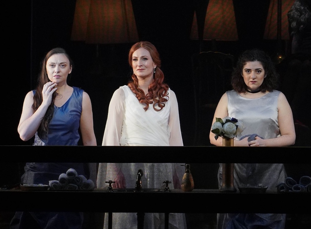 The undisputed protagonist is Ariane. Irish mezzo-soprano Paula Murrihy possesses the stage presence to portray the charismatic character, apart from being a very beautiful woman. Vocally, her performance improves throughout the show, her rather high timbre enhancing the beauty of her portrayal of the role. Bluebeard sings very little, though his presence serves as a dramatic and musical counterpoint to the free-spirited Ariane, so that his absence is felt even when he is not around. In this case, Italian bass Gianluca Buratto is as impressive as the role demands, with his dark and powerful voice, as well as his commanding stage presence.
